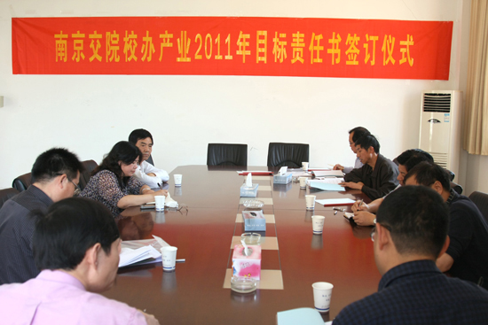 院长贾俐俐代表学院分别与驾训部、江苏育通交通工程咨询监理公司、江苏省南京交院土木工程检测所、南京交苑道路工程有限责任公司负责人签定了2011年经营管理目标责任书。