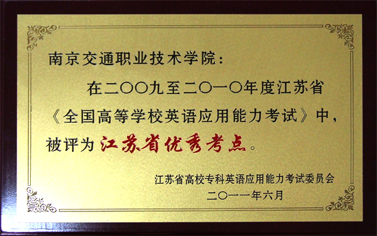 6月10日,在全省高校英语应用能力考试考务工作会议上,学院被省教育厅高校专科英语应用能力考试委员会办公室授予 “2009-2010年度江苏省高校英语应用能力考试优秀考点”称号,是获此荣誉的24所高校之一。