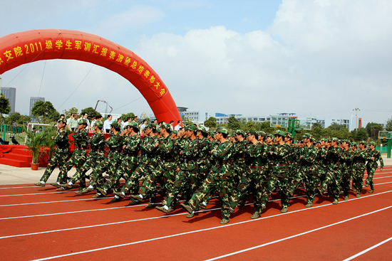 张毅院长宣布2011级新生军训成果汇报表演大会开始。