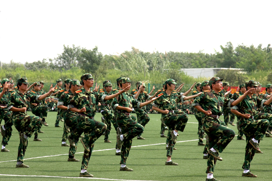 30个学生军训方队以整齐矫健的步伐通过主席台,接受院领导和部队首长的检阅。受训新生汇报表演了军体拳、擒敌术、匕首操、唱红歌表演等军训科目,同学们精神抖擞、意气风发、口号嘹亮、步伐坚毅,充分展现了交院学子的优良传统和当代大学生朝气蓬勃、奋发向上的精神风貌。承训部队教官精彩的格斗术,将汇报表演推向高潮。