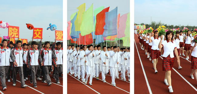 入场式上,彩旗飘扬,意气风发的国旗队、校旗队、彩旗队、鲜花队、各代表队迈着昂扬的步伐进场。整齐的服装、嘹亮的口号、矫健的步伐,无不展显出南京交院人蓬勃向上、意气风发的精神风貌。赛场上,师生们发扬不畏困难、奋力拼搏的精神,勇创佳绩,留下了一幅幅感人至深的画面;观众中,各代表队啦啦队用他们激昂的呐喊助威勾勒出一道道亮丽的风景线。
