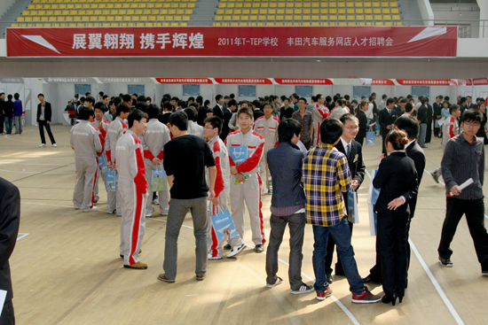 一汽丰田汽车销售有限公司、广汽丰田汽车有限公司、丰田汽车(中国)投资有限公司旗下华东区的36家以汽车销售及售后服务为主要业务的汽车经销商(服务网点企业)参加了本次招聘会,为学院汽车工程系2009级丰田班和非丰田班学生提供了包括销售顾问、维修、服务接待、钣金、喷漆等就业实习岗位440多个。
