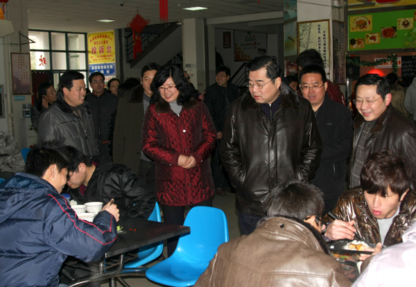 院领导听取了后勤部门负责人关于新学期餐饮服务保障工作的汇报,对饭菜品种和价格的制定、卫生保障措施、餐饮运行机制和工作效率等方面情况作了深入了解。时值中午就餐时间,院领导与正在用餐的师生进行了交谈,详细询问饭菜是否可口、种类是否齐全、价格是否合理以及对餐饮服务保障工作有何意见和建议。