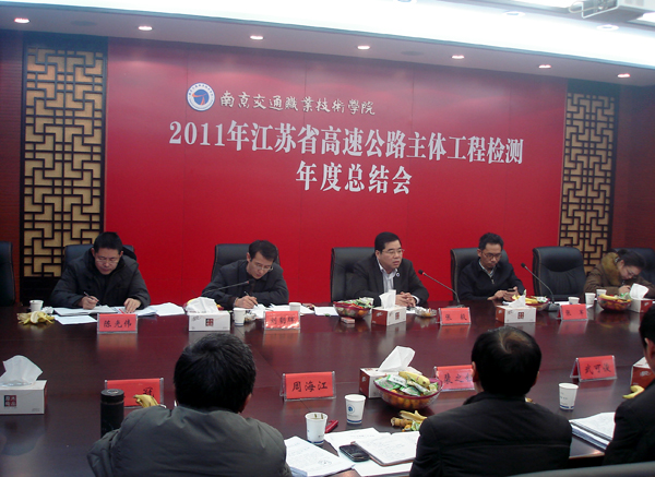 3月21日下午,2011年江苏省高速公路主体工程检测年度总结会在学院行健馆会议室召开。江苏省交通工程建设局质量安全技术监督处张军处长、刘朝晖副处长等领导以及南京交院检测所、江苏省交通工程集团百润工程检测有限公司和江苏交通高级技工学校三家检测单位负责人参加会议。学院张毅院长出席会议并讲话。