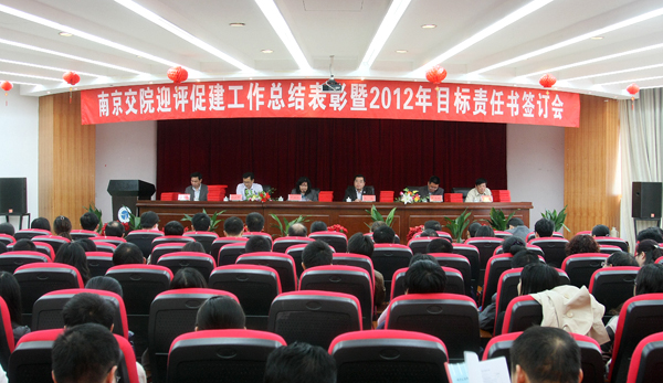 为更好地总结评估工作经验,巩固评建成果,明晰今年评估整改工作目标任务,进而推动学院2012年工作目标圆满完成,学院于4月26日上午在明德楼报告厅隆重召开迎评促建工作总结表彰暨2012年目标责任书签订会。学院全体院领导、中层干部、受表彰人员、机关全体工作人员以及150余名教师代表参加了会议。会议由党委书记贾俐俐同志主持。