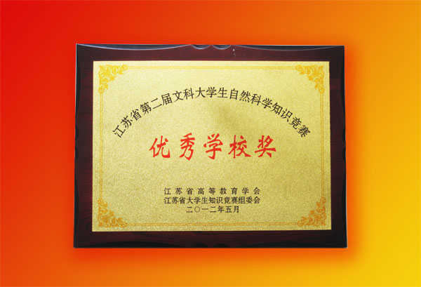 5月20日下午,江苏省第二届文科大学生自然科学知识竞赛决赛暨颁奖大会在江苏教育电视台举行,学院获得“优秀学校奖”。