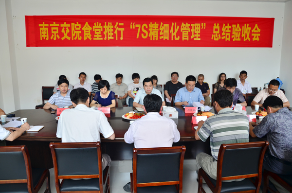 在学院领导的大力关怀和支持下,作为关系师生后勤服务基本保障重点工作之一的学生食堂“7S精细化管理”推行工作,经过近一个学期努力,按计划完成第一阶段任务,并于6月15日下午进行总结验收。院长张毅出席;江宁区食品药品监督管理局食品监督所相关领导、兄弟院校同仁、师生代表等应邀出席。学院后勤、学工、保卫、纪委等部门相关负责同志参加验收会。副院长周传林主持验收会。