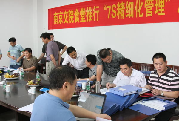 6月26日,由南京理工大学副校长刘刚为组长,盐城师范学院后勤集团正处级调研员殷大云、南京工业大学后勤服务集团副总经理王继军、常州纺织服装职业技术学院后勤集团总经理程则思等五人组成省教育厅检查小组莅临学院,就学院引入社会餐饮企业承包食堂经营管理情况进行专项检查。