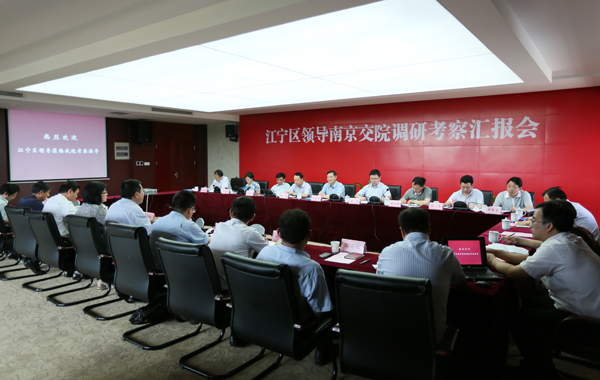 8月23日上午,江宁区政协主席孙桂明、区政府副区长李雁率区科技局、交通运输局、水利局、文广局、规划局、科学园等单位主要负责人一行12人来学院进行调研视察活动。调研考察汇报会在学院弘毅楼425室召开,汇报会由张毅院长主持。