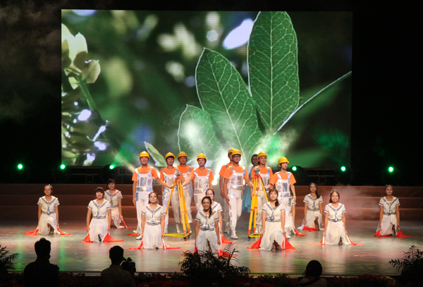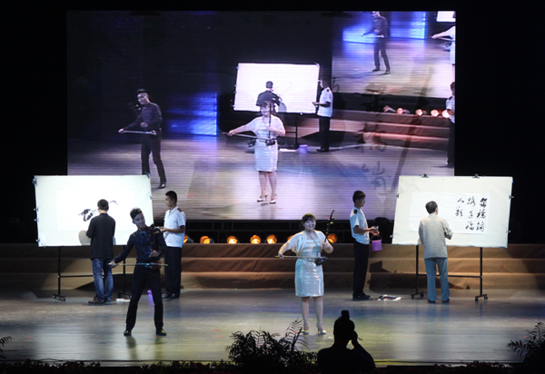 舞蹈《成长在蓝天下》以学院五十多年的办学历史和人才培养为创作背景,讴歌了交通教育者呕心沥血培养交通建设人才的高尚情怀,充分融合了交通元素,展示了学院特色。演员真挚的情感表达、层次分明的舞蹈情节、激情迸发的动作给予现场观众强烈的舞台画面感。二胡合奏战马奔腾技艺精湛、激荡人心,国画孺子牛笔墨独到、寓意深刻,舞台上民族艺术的完美结合耀眼夺目。