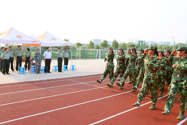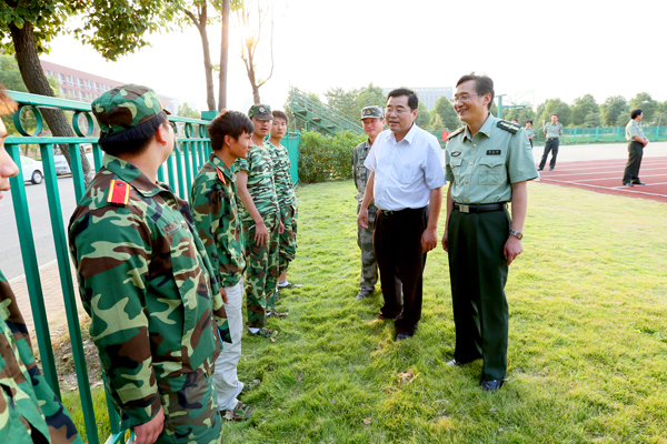 张院长听取了军训工作领导小组和承训部队领导关于本次军训情况的汇报,详细了解了军训汇报表演各项工作准备情况并观摩了阅兵式、军体拳、拉歌等军事项目表演,对全体新生在近两周时间的军训中取得的成效表示充分肯定,对承训教官连日来的辛勤付出表示感谢。视察过程中,院领导一行还看望了带伤患病仍然坚持参加军训的同学。