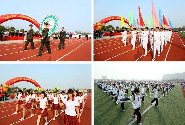 入场式上,彩旗飘扬,意气风发的国旗队、校旗队、彩旗队、鲜花队、各代表队迈着昂扬的步伐进场。整齐的服装、嘹亮的口号、矫健的步伐,无不展显出南京交院人蓬勃向上、意气风发的精神风貌。赛场上,师生们发扬不畏困难、奋力拼搏的精神,勇创佳绩,留下了一幅幅感人至深的画面;观众中,各代表队啦啦队用他们激昂的呐喊助威勾勒出一道道亮丽的风景线。