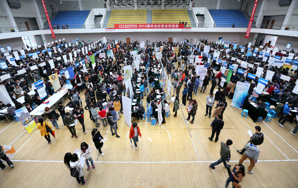 此次招聘会是学院今年继举办路桥建工类大型双选会和多场中小型专场双选会之后,举办的又一次大型综合招聘会。参会企业涉及行业广泛,职位需求更趋多样化,包括汽车、运输管理、电子、机械、电气、通信、物流、计算机、艺术等多个领域。招聘会共吸引了省苏舜集团、南京朗驰集团、苏州汽车客运集团、中国人民财产保险股份有限公司、苏宁电器、徐工集团等省内外228家知名企业进场招聘,提供岗位近6000个。而学院2013届在校毕业生仅1893名,供需比达1:3。