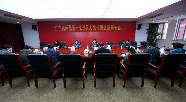 3月22日上午,我校弘毅楼四楼会议室师生代表济济一堂,召开江宁高新园第十七选区人大代表述职报告会。校党委书记贾俐俐作为江宁区第十六届人大代表在会上述职,并接受选民代表评议。江宁高新园人大工委主任周大鹏到会讲话。会议由江宁高新园人大工委办主任陈晋卿主持会议。