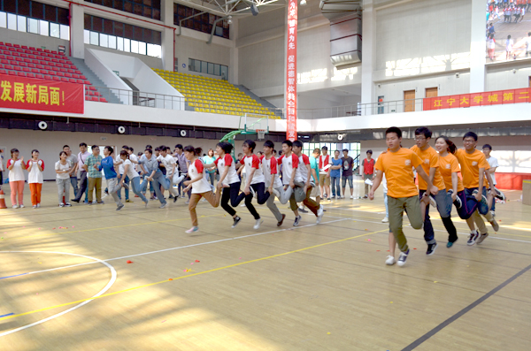 趣味心理运动会是促进学生交流、合作,培育奋发进取、理性平和、开放包容的学生心态和校园氛围的一项重要形式和载体。5月22日下午,江宁大学城第二届趣味心理运动会在我校行健馆举行。校党委许正林副书记出席开幕式并致辞,江苏省江宁大学城心理健康教育与研究中心郑爱明主任出席开幕式。