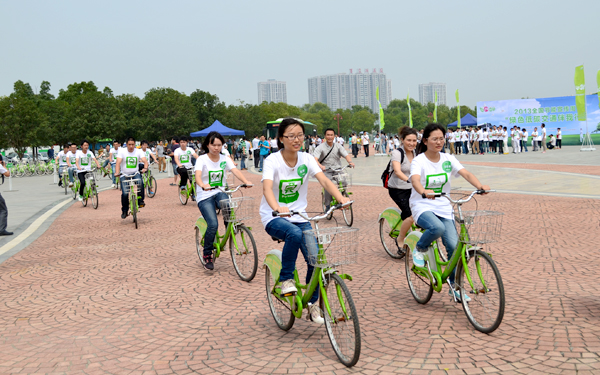 江苏省交通运输厅李先友副厅长、我校张毅校长等领导出席了启动仪式,并带头骑行公共自行车、体验电动公交车。