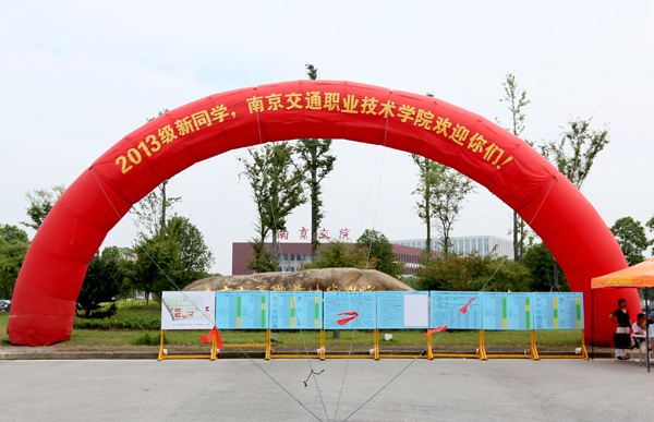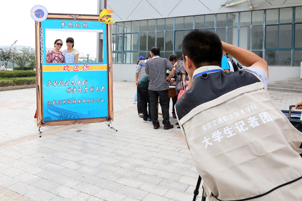 新生和家长在校庆六十周年“梦想祈愿牌”前留影