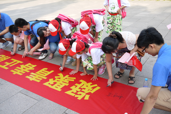 7月4日至8月14日,12名师生还在市内多个居民区、交通站点、景区进行“中国梦”宣讲。共发放“中国梦”宣传倡议书1000份,实地采访1600多人。
