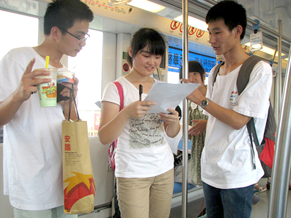 【让公共交通与市民出行共和谐】运输管理学院城市公共交通站点设计调研小分队14名师生队员7月…日起,围绕“城市轨道与公交线路的衔接”主题,深入南京市交管部门、公交线路、城市居民区开展了为期两周的调研实践。队员们走访了省交通规划设计院、南京客运交通管理处、各地铁站点和公交站点,在参与白下区群众的广场演出活动中与市民面对面交流,并通过问卷等形式采集到“地铁站点与公交站点距离太远,希望政府进行改进”、“晚间地铁停运时间相对较晚,公交停运时间较早,希望晚间公交延时” 等“市民的声音”, 受到市客管处等部门的再度重视。