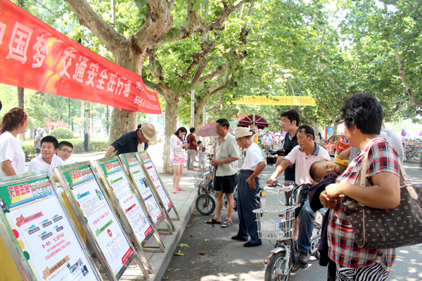 【交通安全“再行动”】路桥与港航工程学院社会实践团队7月23日起历时一周,在邳州市开展了交通安全主题宣传实践活动。队员们积极配合当地公安交巡警,顶烈日、冒酷暑深入社区、街道、各大公园、十字路口,向市民宣传交通法规和常识。活动共计展出宣传展板50次、观看的市民达8000余人,发放交通安全知识宣传材料1000余份、交通安全调查问卷200余份。队员们还亲身体验了交巡警协管员岗位,协助维护交通秩序,及时劝阻了500多名行人和100多起机动车、电动车和自行车闯红灯的行为。
