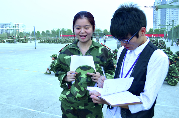 校记者站采访军训队员
