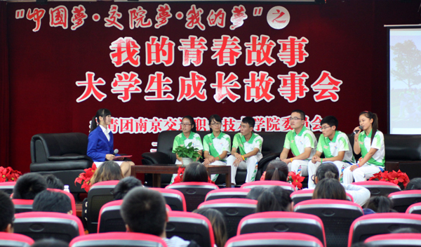 10月23日晚,由共青团江苏省委、江苏省教育厅、江苏省学生联合会主办的2013年“我的青春故事”江苏省大学生成长故事会南京交通职业技术学院专场在我校明德楼报告厅举行。来自江苏经贸职业技术学院、江苏海事职业技术学院、南京机电职业技术学院及我校各院系的300余名师生参加了本次活动。