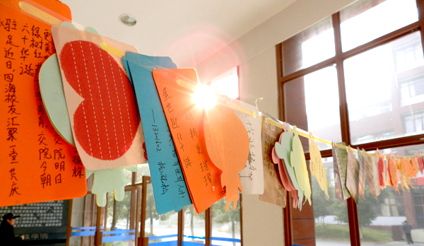 同学们纷纷将对母校的祝福写在纸上,交院情怀迎风飘动
