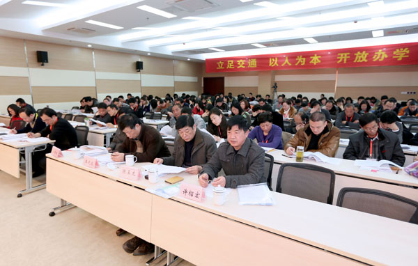 大会在庄严的国歌声中开幕。张毅院长作了题为《改革创新、立德树人、内涵发展,凝心聚力打造国内一流交通运输类高职院校》的学院工作报告。报告从人才培养质量稳步提升、人才工作机制不断完善、开放办学呈现新局面、学生工作展现新风貌、社会服务能力持续增强、办学条件明显改善、幸福校园工程迈出新步伐、党建科学化水平不断提升等八个方面概括了2013年学院各项事业取得的突出成绩;报告对当前职业教育发展和学院面临的新形势进行了科学研判,分析指出了当前学院发展面临的一些困难和亟待解决的问题,明确了学院发展的基本思路,并在此基础上,提出了2014年学院工作的总体要求:深入贯彻落实党的十八大和十八届三中全会、全省交通运输工作会议和教育工作会议精神,坚持以科学发展观为指导,以产教深度融合、校企紧密合作为主线,以办学模式和培养模式改革为重点,始终坚持内涵发展、特色发展、质量发展、创新发展道路,大力实施人才强校、特色兴校、质量立校、开放办学战略,全面推进学院各项工作再上新台阶;报告指出,2014年要全力以赴做好现代职业教育体系建设、办学体制机制改革、教育教学改革、招生就业、学生教育管理服务、产教深度融合校企紧密合作、人才优先发展战略、国际化战略、职业培训能力拓展、科研与产业服务能力提升、校园建设与管理、党建和思想政治工作等12个方面重点工作任务。