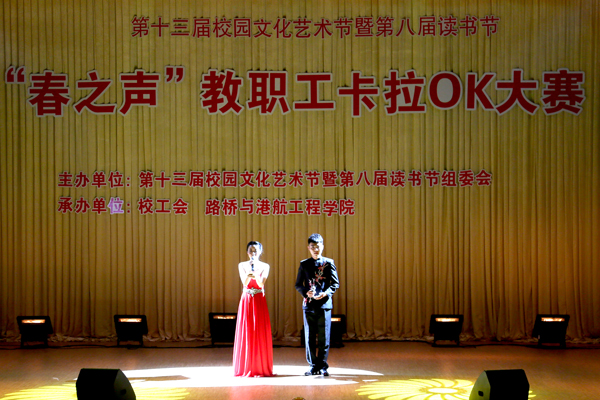 5月7日晚,由路桥与港航工程学院承办的“春之声”教工卡拉OK大赛在图书馆报告厅精彩举办。全体校领导、艺术节组委会全体成员与广大师生一起享受了这场视听盛宴。11个分工会共15名选手参加了比赛。比赛分为两轮,每个参赛单位演唱2首歌曲。曲目精彩纷呈,既有经典歌曲的温情传唱,又不乏动感新歌的激情演绎。现场气氛活跃,师生群情高涨。选手们以娴熟的唱功和稳健的台风,展示了较高的艺术素养和昂扬的精神风貌。经过激烈角逐,运输管理学院分工会崔嘉,机关-分工会季月霞荣获一等奖。