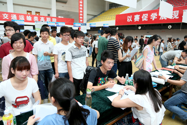 6月4日上午,我校2015届毕业生实习预就业双选会(路桥专场)在行健馆举行。本次双选会吸引了省内外共130余家企业前来招聘,为2015届632名毕业生提供了近2000个就业岗位。其中不乏江苏省交通工程集团有限公司、江苏省交通规划设计院、江苏省交通科学研究院、南京港务工程公司等路桥类知名企业。