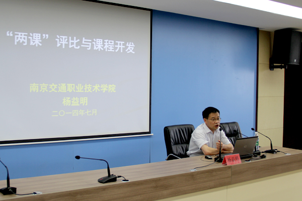 7月13日下午,江苏省职业教育交通运输类专业教科研中心组秘书长、学院副院长杨益明以“‘两课’评比与课程开发”为题,介绍了全省职业学校“两课”(省级研究课、示范课)评比的基本情况,结合典型案例强调了“教案评比”、“说课”、“答辩”等环节的要领,并给学员提出了参赛的建议。随后,杨副院长结合我院汽车专业群项目化课程的开发、建设的实践,向培训班全体学员分享了课程开发的全过程。