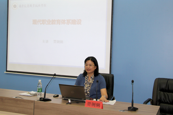 7月14日上午,江苏省职业教育交通运输类专业教科研中心组组长、院党委书记贾俐俐以“现代职业教育体系建设”为题,为培训班全体学员介绍了国家推进现代职业教育体系建设的政策背景,详细解读了国家现代职业教育体系建设规划,并结合我院“3+2”高职—本科分段、“3+3”中职—高职衔接的实践,总结了推进现代职业教育体系的经验和收获。