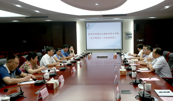 7月25日上午,湖北交通职业技术学院陈方晔院长一行8人来我校访问。校领导张毅、杨宁热情接待了到访客人,相关二级院系和职能部门领导接待了来宾。