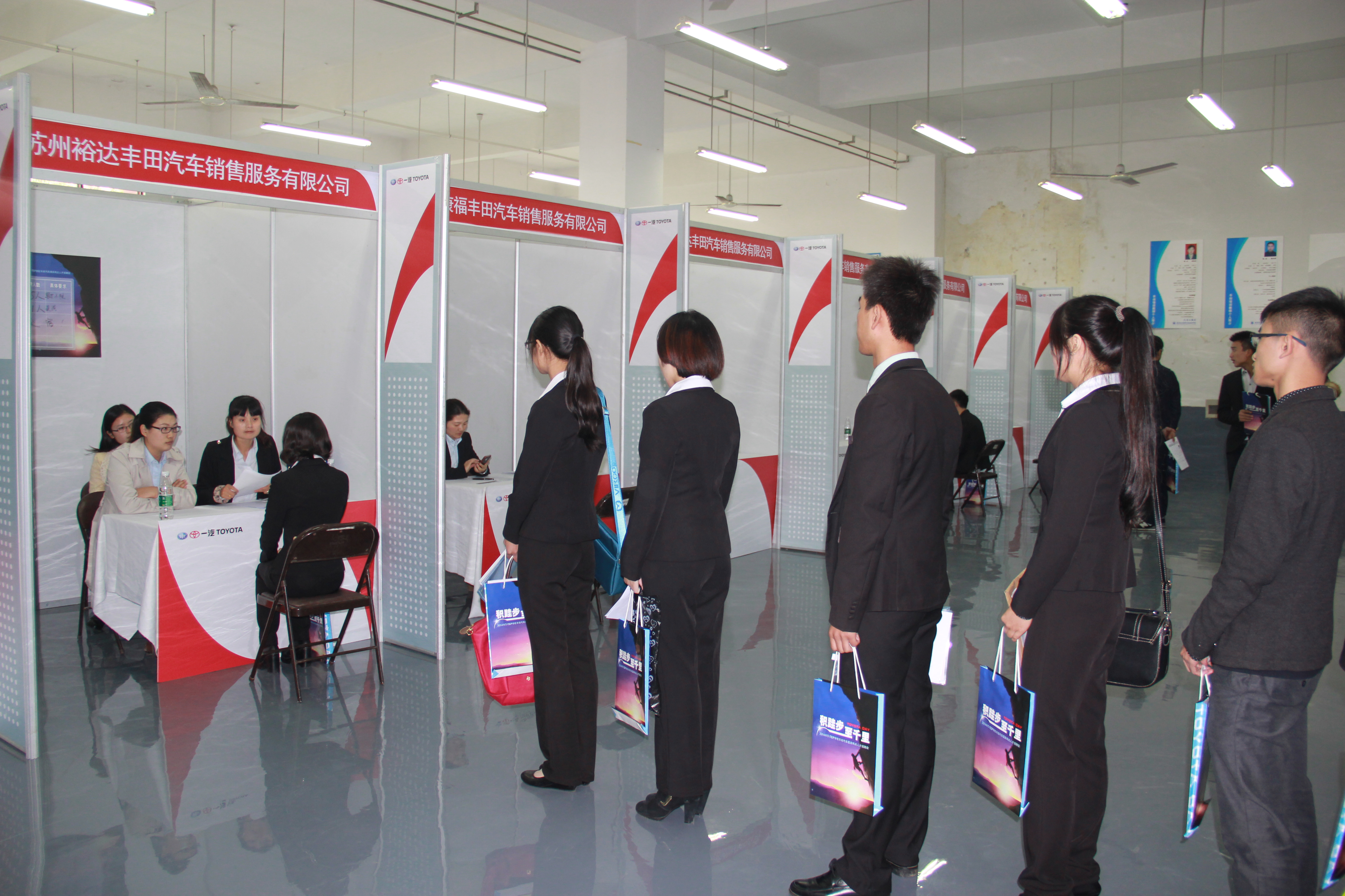 上午11点,丰田班学生与丰田经销商见面会在明德楼报告厅进行,现场气氛热烈活跃,丰田班学生纷纷自信大方地作了自我推介。下午1点,招聘会在致远楼汽车实训中心举行,学生们与用人单位展开了密切互动。
