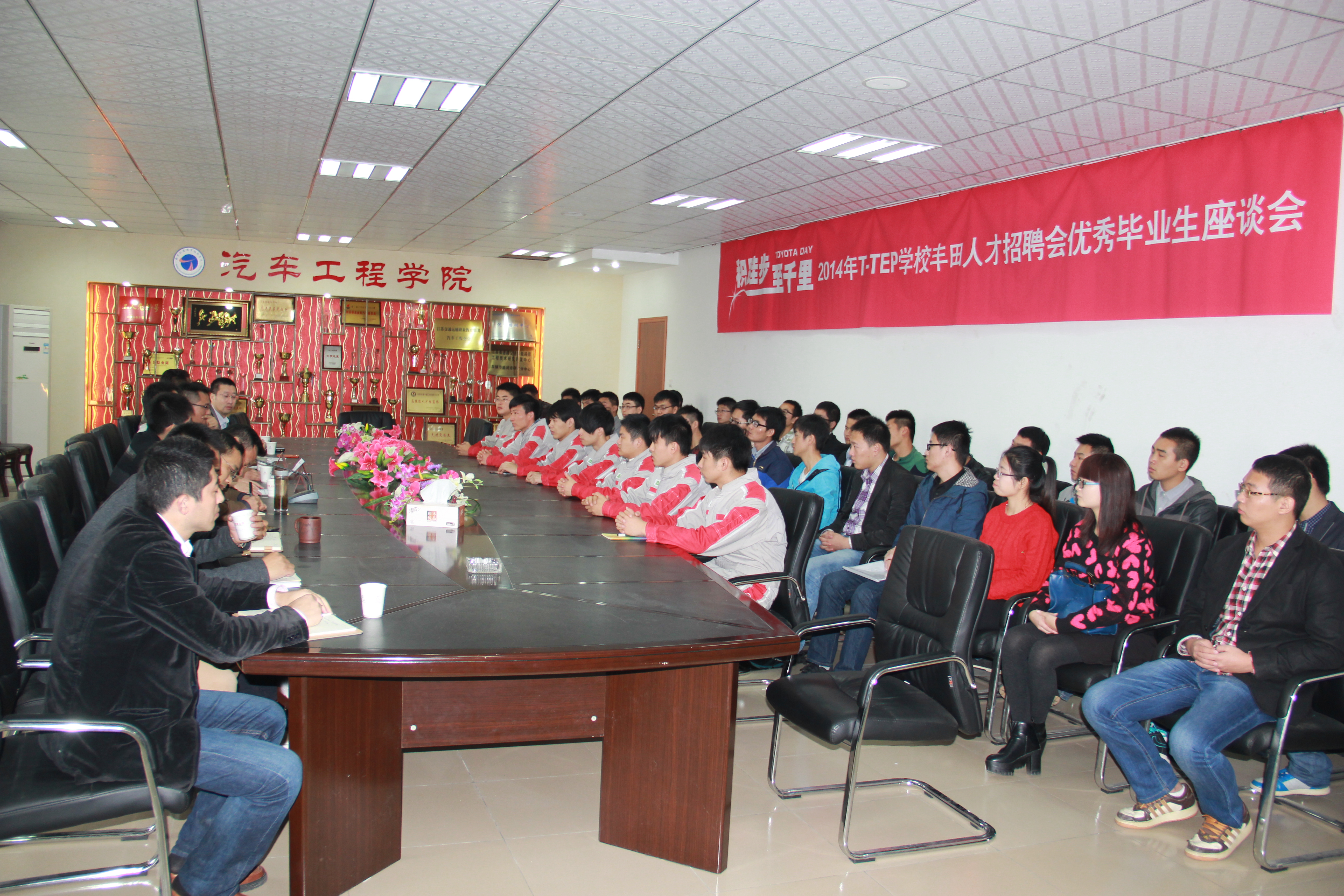招聘会期间还举行了丰田班优秀毕业生交流会,应邀返校已成长为企业技术骨干的丰田班毕业生现身说法,围绕如何应聘、如何融入企业文化、如何钻研技术,与学弟学妹们分享了自己成功的经验和体会。