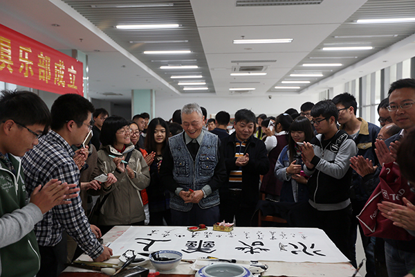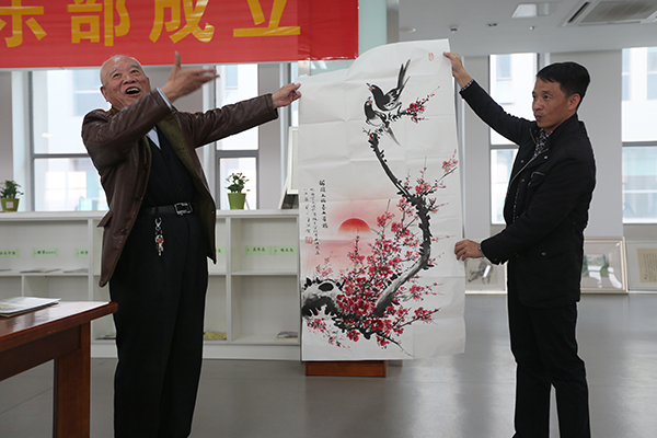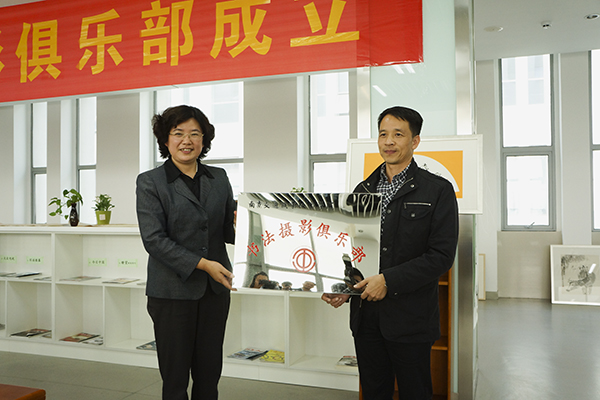 贾书记首先对书画摄影俱乐部的成立表示祝贺,对俱乐部通过书画、摄影等艺术活动丰富校园文化内涵,构建“幸福交院”工程提出了明确的要求,并作为荣誉会长给俱乐部授牌。艺术家代表刘仁通、施元龙老先生先后作了热情洋溢的讲话,并送上最新创作的书画作品。