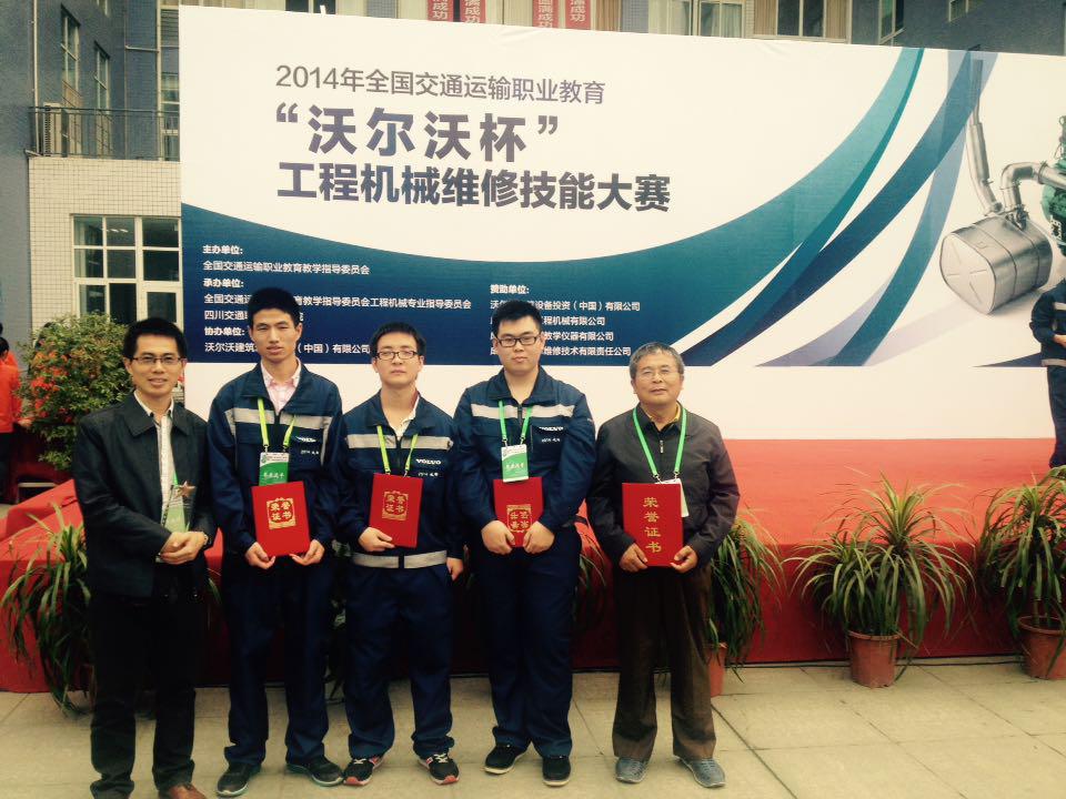 近日,由全国交通职业教育教学指导委员会主办,沃尔沃建筑设备投资(中国)有限公司协办的2014年全国交通运输职业教育沃尔沃杯工程机械维修技能大赛在四川交通职业技术学院举行。来自全国18所高等职业院校共54名工程机械维修专业的学生参加了比赛。我院机电工程学院周舟同学荣获三等奖,学院荣获优秀组织奖。