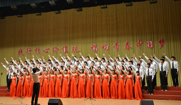本次比赛以院系团总支为单位参赛,7支参赛队伍共选送了14个参赛曲目。《映山红》、《歌唱祖国》等曲目为观众演绎爱国乐章,唱出了吹响了传承“一二·九”精神、践行社会主义核心价值观的爱国心声。