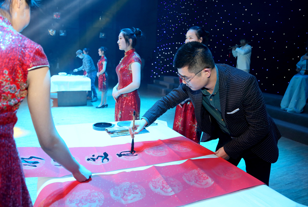教工现场书写迎新年对联