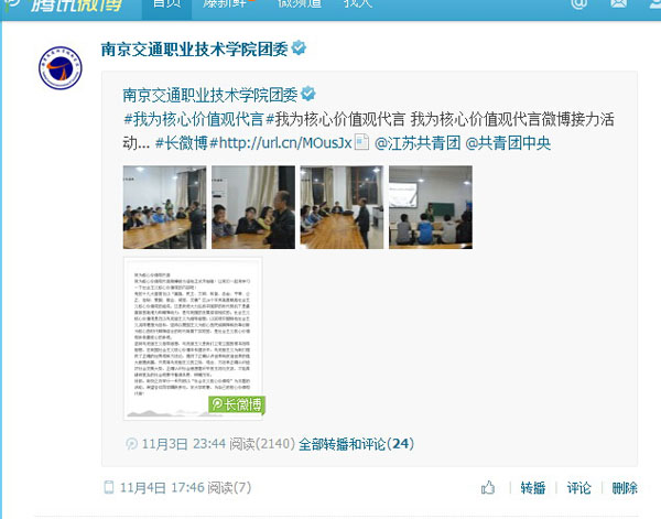 “我为核心价值观代言”微博接力活动