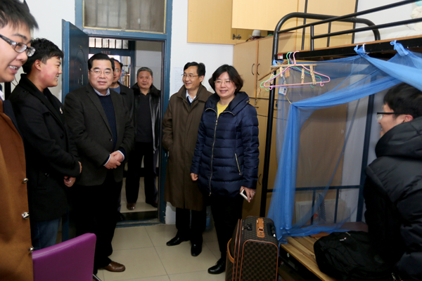 中午时分,院领导一行先后来到食堂和宿舍,检查师生餐饮工作、学生报到和宿舍内务情况。院领导们走进宿舍,向同学们送上了新春祝福,并勉励同学们新学期取得新的成绩。