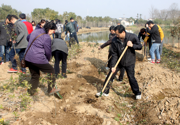 在园区技术人员指导下,师生们分工协作,挖坑、栽苗、培土,现场热火朝天。经过一个半小时的努力,大家用辛劳和汗水造就了一片绿林,体会了用劳动创造优美环境的喜悦和欣慰,为这个春天增添了新的生机。