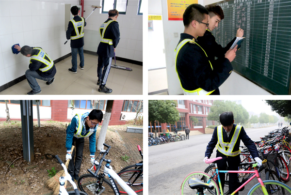 近日,校园里随处可见忙碌的“绿马甲”身影,他们有的在清理校园主干道垃圾,有的在清理绿化带杂草,有的在公寓、教室拖地、抹擦玻璃,忙得不亦乐乎,这是学院正在开展的2014级学生公益劳动教学周活动。为培养学生的劳动意识,掌握必备的劳动技能,学会懂得尊重劳动者,珍惜他人劳动成果,学院制定出台了《学生公益劳动教学周管理办法》,将公益劳动课作为必修课,时间为1周,从2014级学生开始实施。