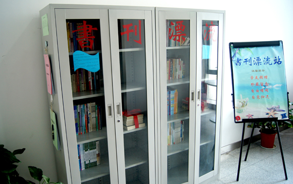 为筹建我院的书刊校园漂流站,图书馆及书刊漂流协会的发起者们于上学期末就启动了此项倡议和工作。同学们利用课余时间收集学友、老师图书,筛选整理书刊、编写漂流规则、加盖漂流书章、布置书柜等,忙碌了两个多月。期间,活动得到了很多师生的支持和响应,共接受捐赠书籍近500本,初次设立了图书馆四楼电梯口、1号至4号食堂连廊两个书刊漂流站点。以后,根据读者的需求还可在更多的地方设立漂流站点。