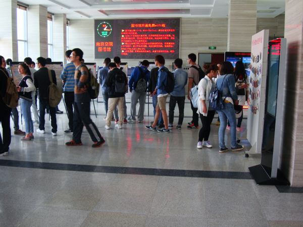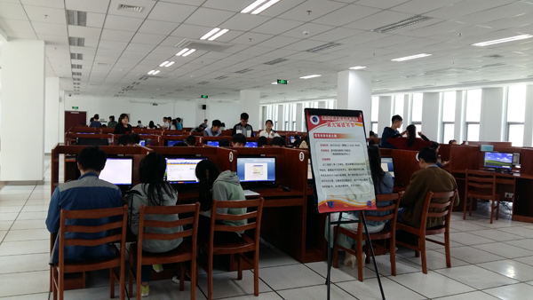 4月22日的图书馆电子阅览区(信息素养培训区),一道道别开生面的信息检索题目出现在参赛者的面前,也吸引了参赛学生浓厚兴趣。面对题目,有的学生苦思冥想,有的学生合作探讨,有的学生则迅速上网搜索,寻找答案。