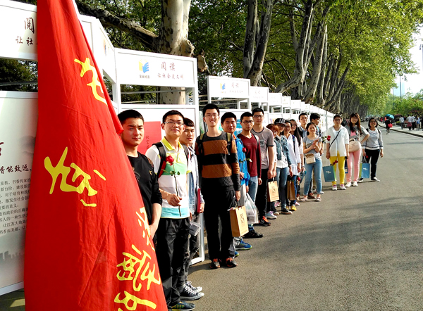 学院37多名读书爱好者相约玄武湖,参加了当天的活动。他们将自己喜爱的图书“晒”出来与其他高校读书爱好者一起交流感想、分享读书体会,并互相交换自己喜爱的图书。他们在“文创产品集市”逛书店、淘新书,在“先锋书店”、“凤凰书城”等淘自己喜爱的书。通过这个活动,同学们不仅感受到南京全民阅读浓浓的书香气息,而且切身体会到“阅读,让社会变的更文明”。