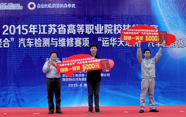 4月25日,2015年江苏省高等职业院校技能大赛“马哈中经合杯”汽车检测与维修赛项、“运华天地杯”汽车营销赛项两个赛项在学院全面展开。经过一天的激烈角逐,最终结果于当天下午揭晓。由刘东升、周志鹏、葛文成三位同学组成的汽车检测与维修赛项代表队( 指导教师:程丽群、陈生枝),由王勉、朱方方两位同学组成的汽车营销赛项代表队(指导教师:王雪琴、江东林)双双蝉联大赛一等奖。