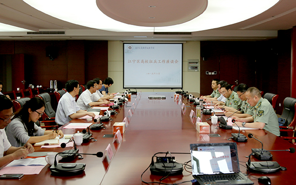 6月10日,南京市江宁区高校征兵工作座谈会在我院弘毅楼321会议室召开。南京警备区司令员曹新民、政治部主任金全斌、江宁区政府副区长薛天如、江宁区人武部部长张荣、政委周立军出席了会议,驻区8所高校的分管校领导、人武部长参加了座谈。