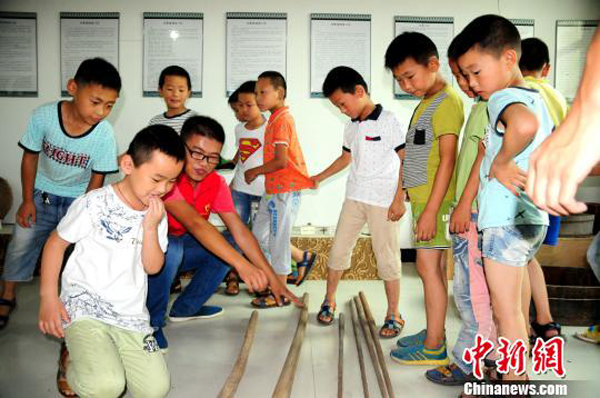 孩子们在学院志愿者的带领下参观开华文化大院的藏品
