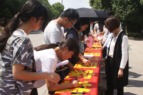 本届推普周的主题为:依法推广普通话,提升国家软实力。学院高度重视推普周工作,根据江苏省语言文字工作委员会的要求,大学生素质教育中心、基础教学部、团委等部门精心制作了橱窗展板、宣传单页,并组织专业教师举行了题为《汉字的起源与发展》的学术讲座,向大学生普及我国语言文字和普通话相关知识。学院“天一”话剧社还精心组织演出了《乌龙山伯爵》,寓教于乐的方式获得了同学们的欢迎。在学院语委会统一组织下,学生会及社团同学还通过横幅、签名、广播的方式,引导大家形成在社会公共交际中使用普通话的习惯和规范使用语言文字的观念。此前,组织相关人员参加了江苏省第18届推普周开幕式暨全省深入推广国家通用语言文字视频会议。